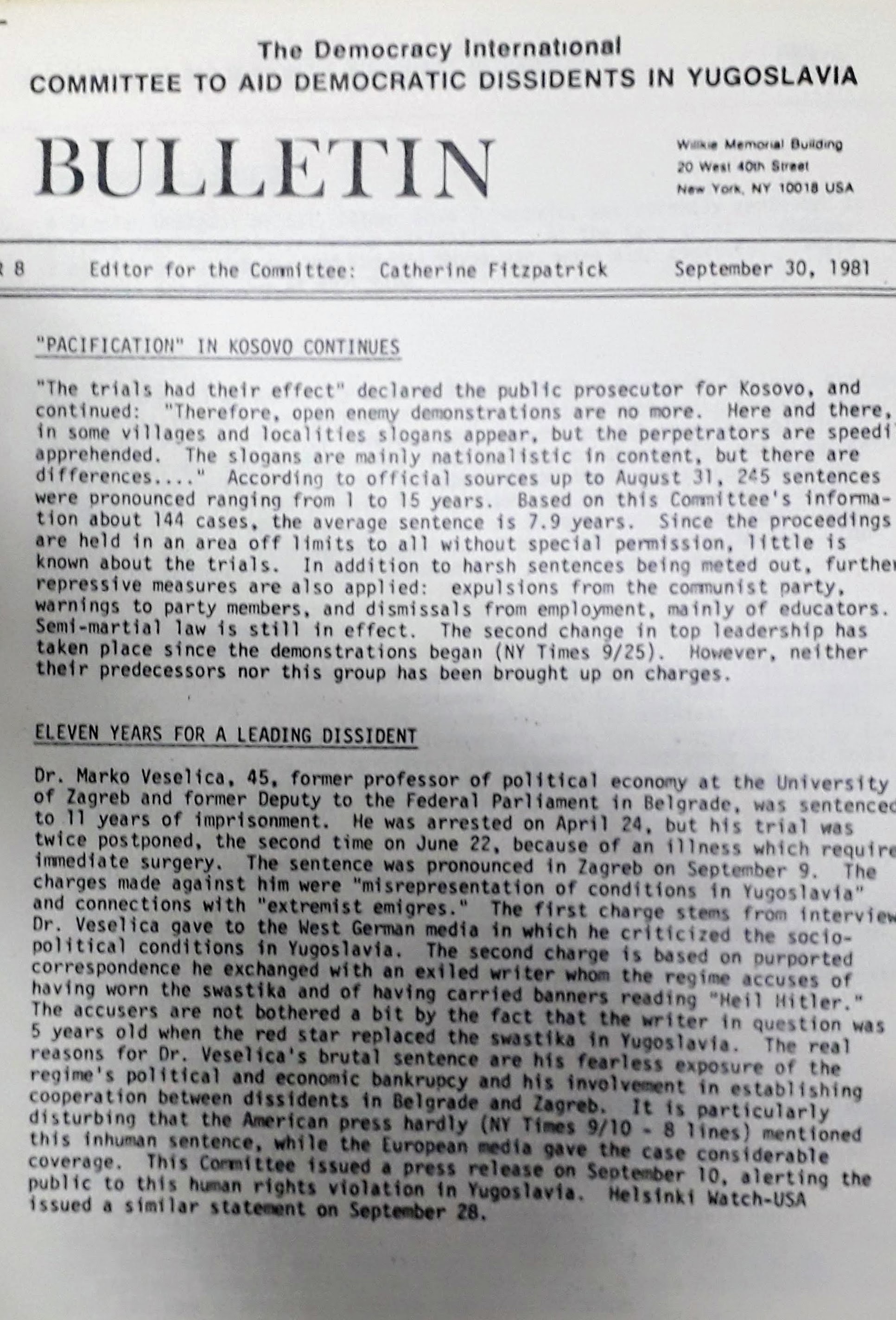 The Bulletin of the Democracy International Committee to ...