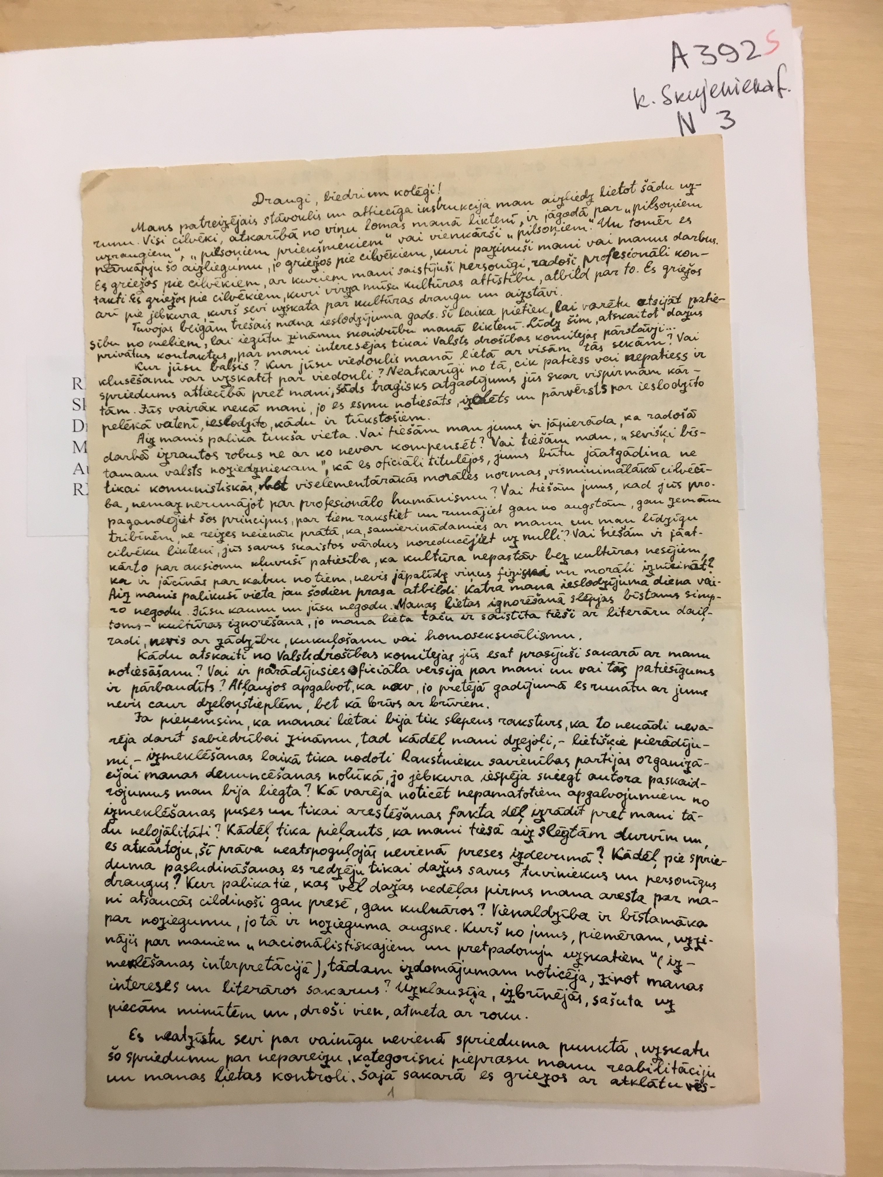 "Friends, comrades, and colleagues!" Open letter, written...
