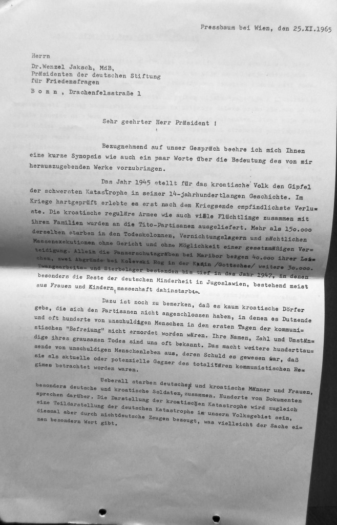 Pismo Krunoslava Draganovića Wencelu Jakschu, 25. studeno...