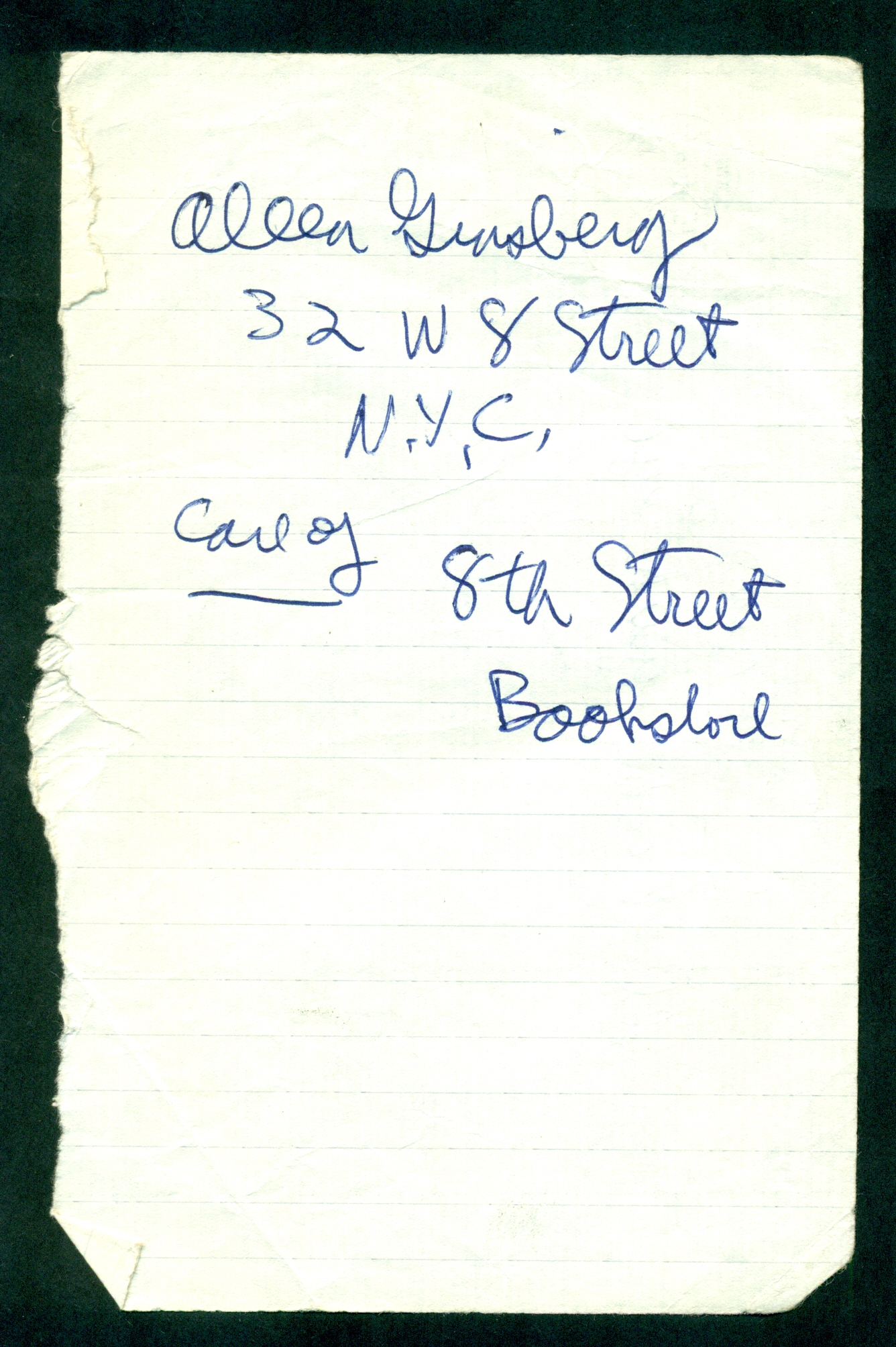 Allen Ginsbergʼs address, 1965. Manuscript