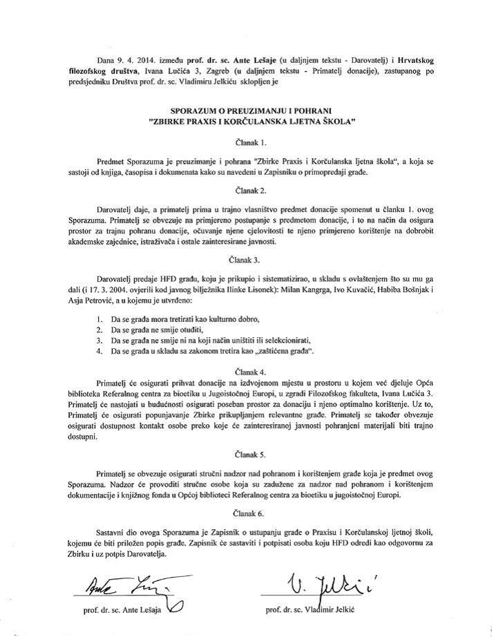 Donacija Arhivske zbirke časopisa Praxis i Korčulanske lj...